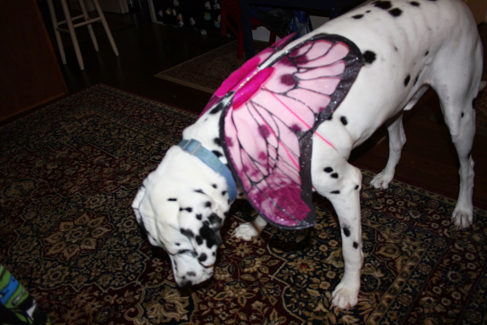 "Pink wings on a boy dog? Seriously!"