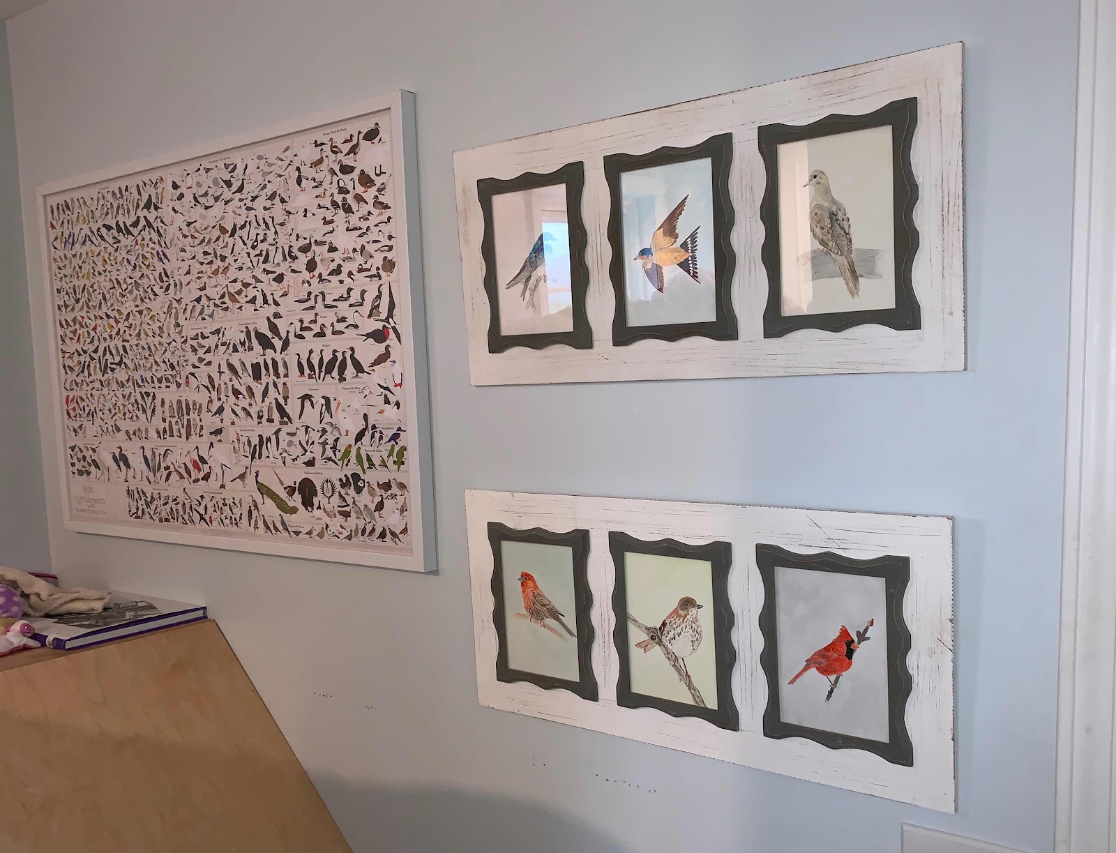 She wanted to have all of these birds displayed in a place she could see and refer to them regularly so we chose a spot by her second floor bunk bed.