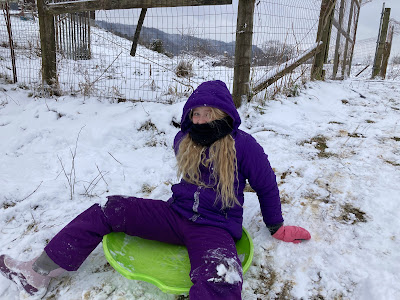 We don't get a lot of snow around these parts. Usually we will get 2-3 snows a year maximum that are sled-worthy. Three inches is considered ... considerable when it comes to snow.