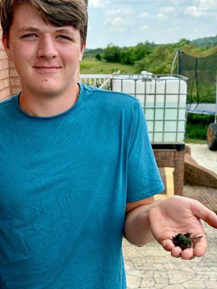Sidge discovered this little hummingbird stuck in the front of John’s truck. He pulled him out, fed him some nectar, gave him a few hours to rest, and he flew away!